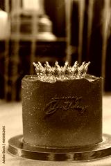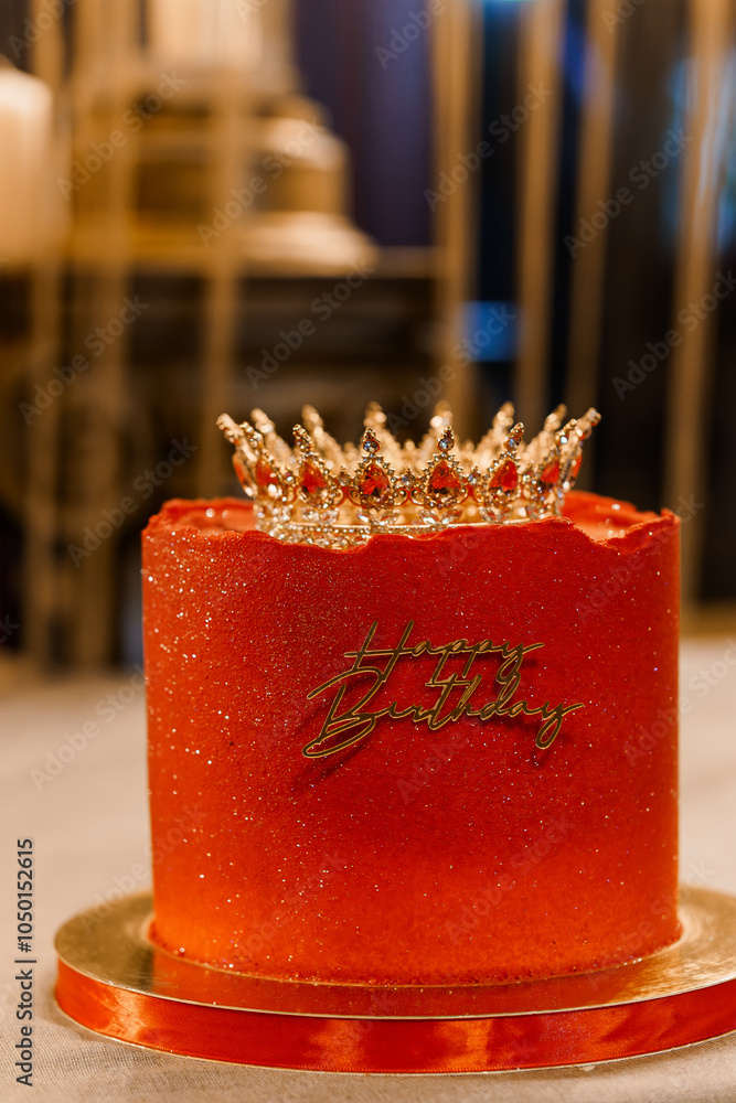 Exquisite Red Birthday Cake with Crown and Glittering Decor
