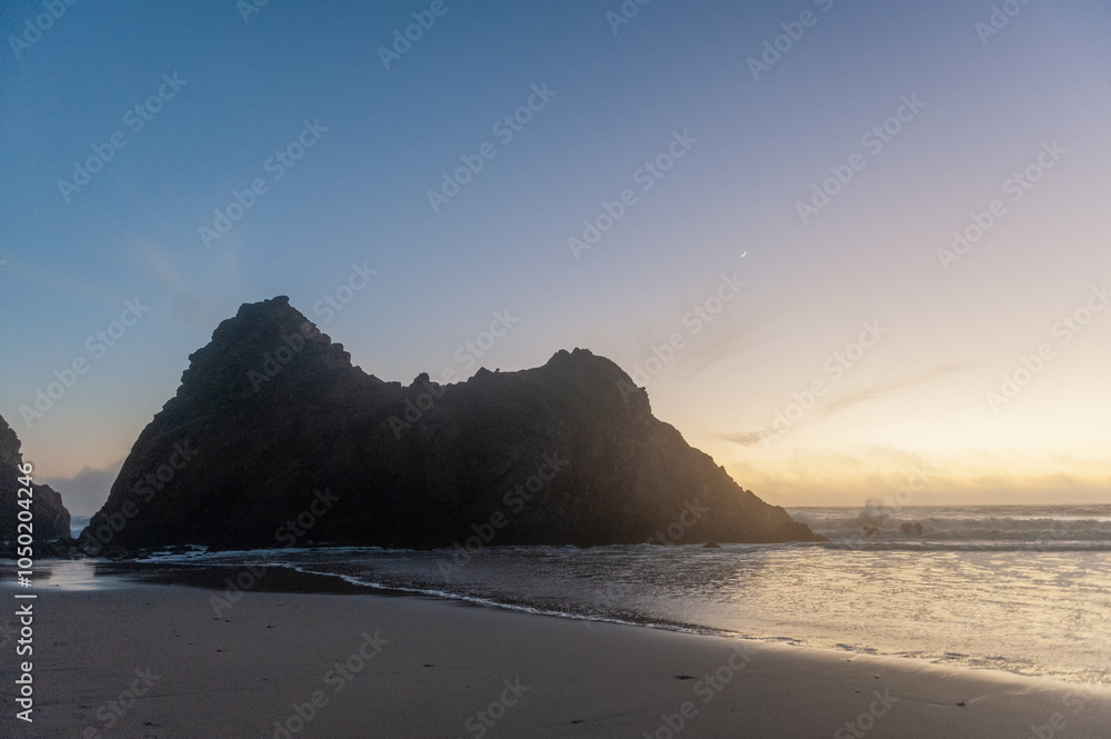 Impression of the keyhole arch rock at Pfeiffer beach around sunset.