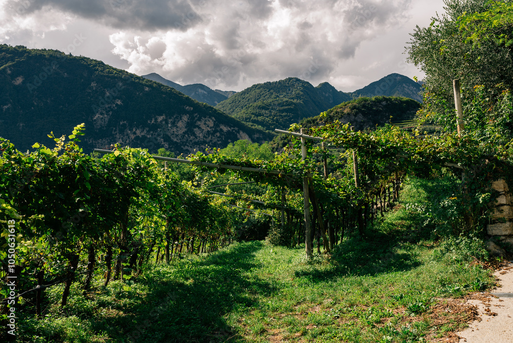 Pathway Leading Through Verdant Mountain Landscape, vineyards