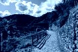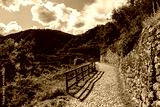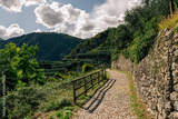 Vineyard mountain Trail with Green Hills and Cloudy Sky