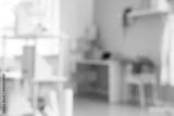 Light interior of doctor's office in clinic, blurred view
