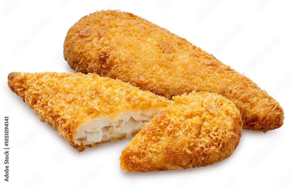 Deep fried crispy fish steak isolated on white, Deep fried Breaded fish isolated on white background With clipping path.