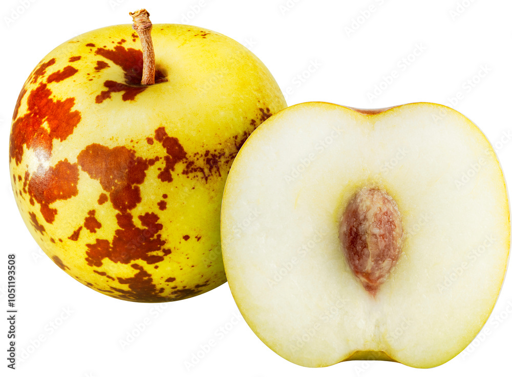 Fresh jujubes isolated on white background, Fresh Chocolate jujube on White Background PNG file.