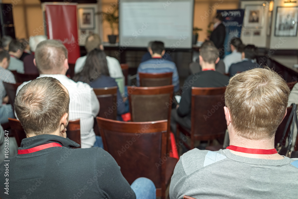 Speaker at Business convention and Presentation. Audience at the conference hall.