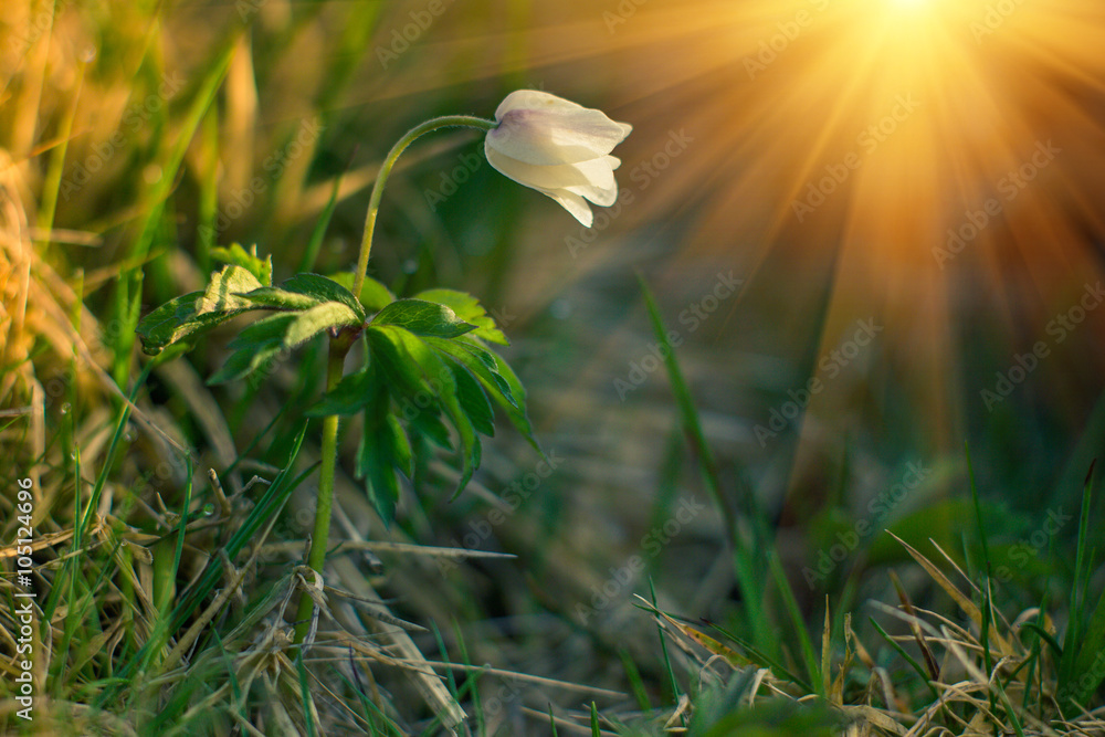 View of close-up beautiful spring flower at sunlight.