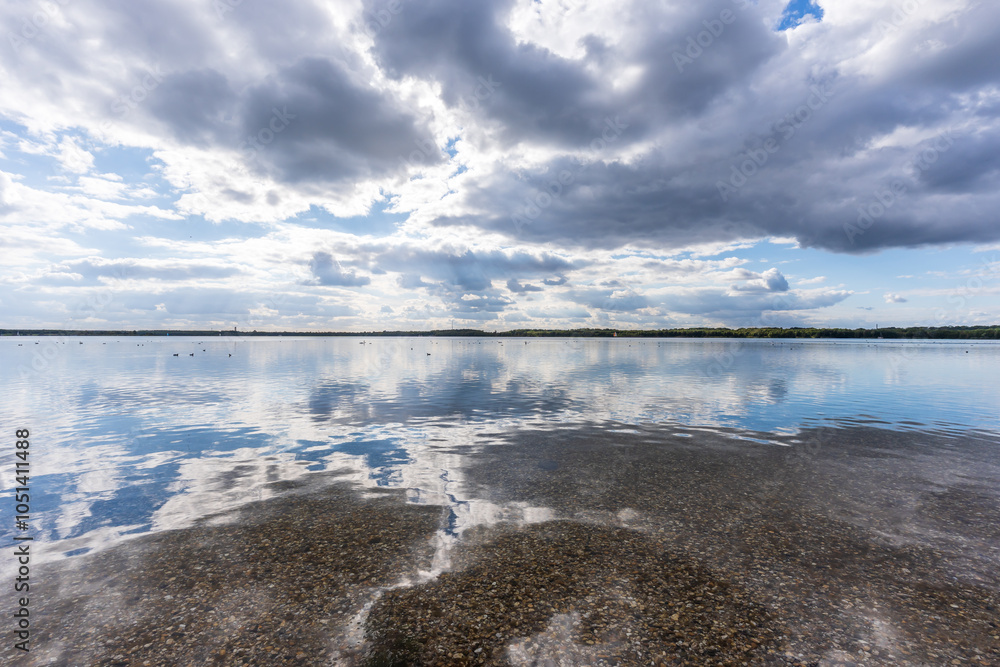 Beautiful natural lake called Cospudener Lake in Leipzig, Germany