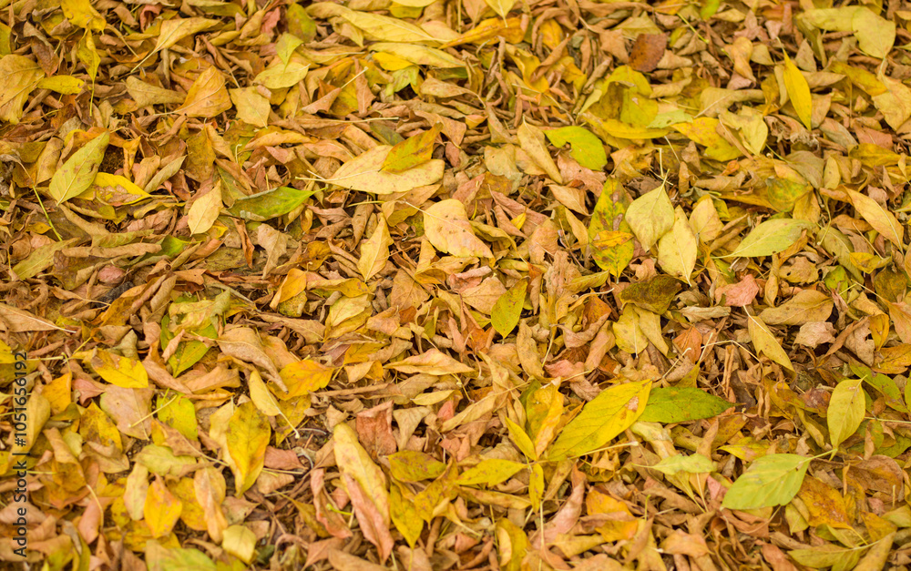 Many yellow autumn leaves as background