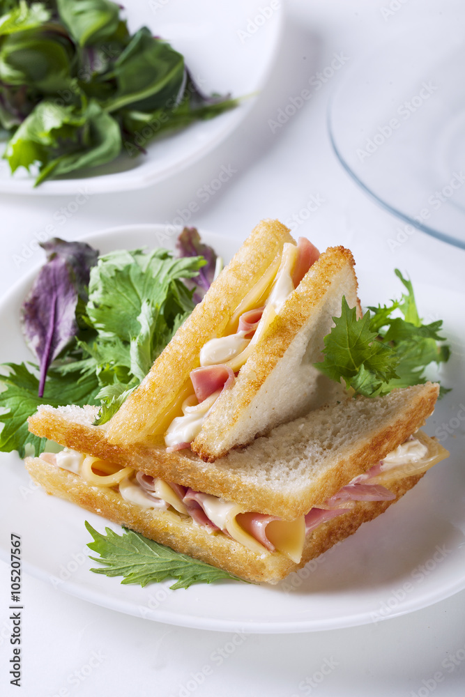 two sandwich with ham and cheese butter spices, sausage, pepperoni, chorizo