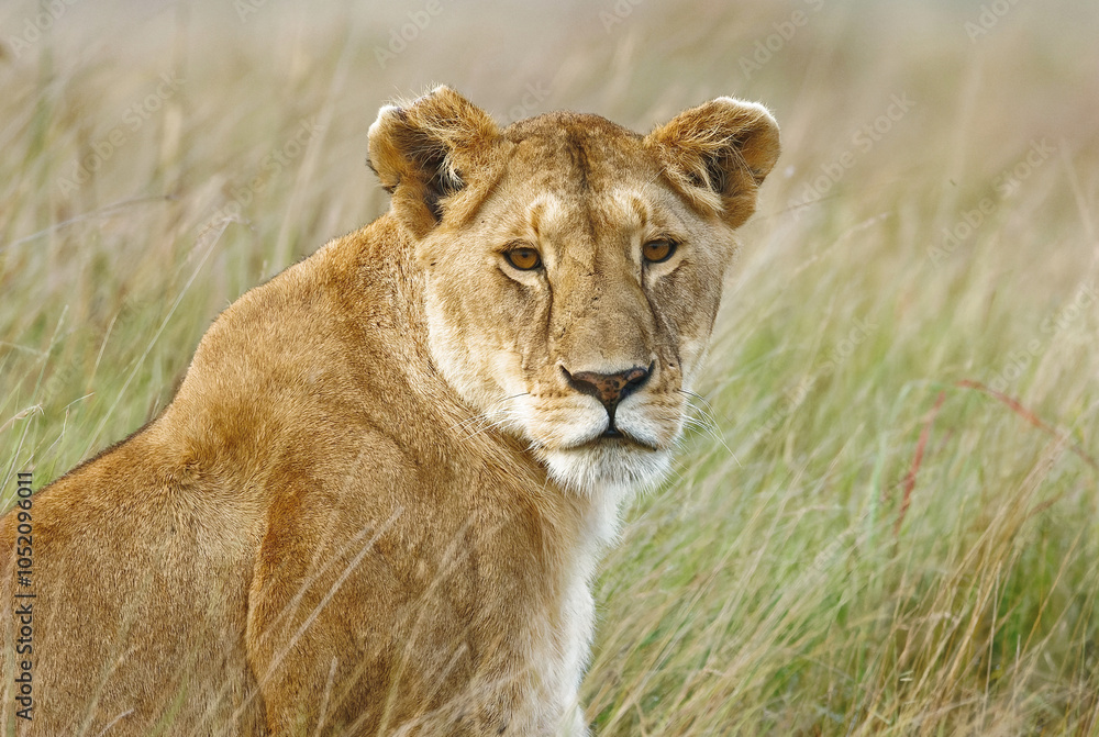 Beautiful Portrait of African Female Lioness at Masai Mara National Park, This can be a perfect picture for a wallpaper in living room.