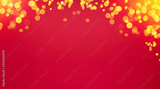Blurred golden christmas lights as a frame on red festive christmas background.