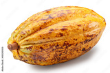 Fresh yellow cocoa fruit or cocoa pod isolated on white background. Clipping path.