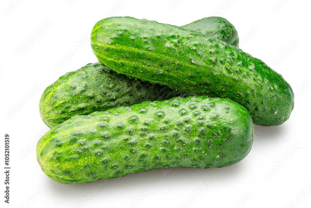 Fresh sweet small cucumbers isolated on white background. Cucumbers that are used to pickling or slicing.