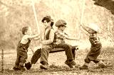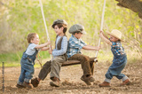 Children on swings sunny summer day