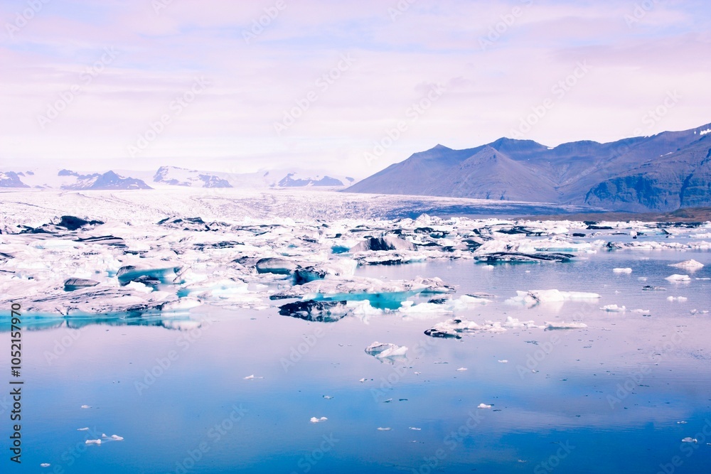 Iceland iceberg lagoon - Jokulsarlon landscape in summer. Retro filtered color style.