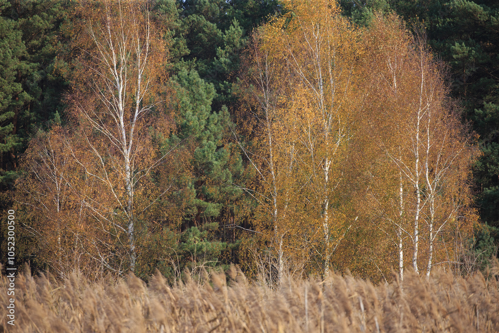 Beautiful autumnal scene. Autumn foliage background. Trees with yellow leaves