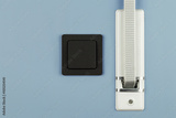 roller blind belt and light switch on blue wall