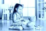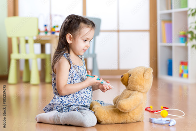 kid playing a doctor in children room