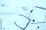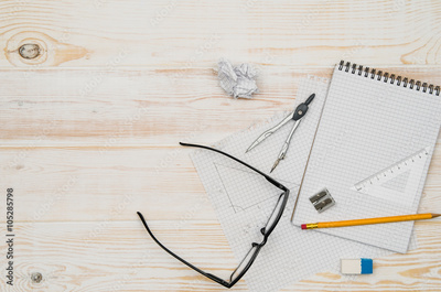 Office table or desk seen from above. Top view product photograph. Shool or university concept image.