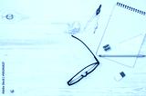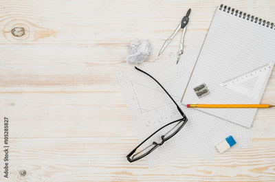 Office table or desk seen from above. Top view product photograph. Shool or university concept image.