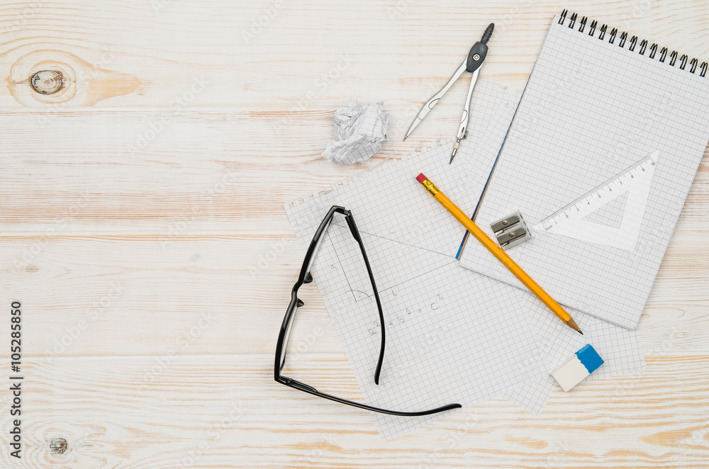 Office table or desk seen from above. Top view product photograph. Shool or university concept image.