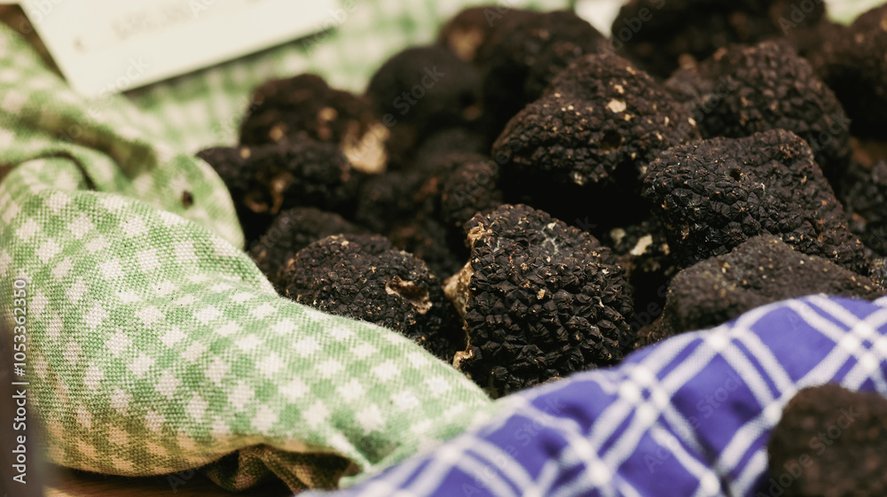 Delicious black truffles showcased at the Alba Truffle Festival in Italy during autumn season