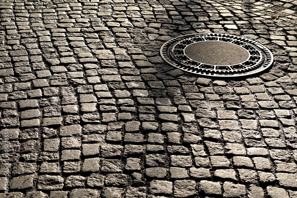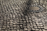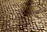 Gullideckel auf einer alten Straße