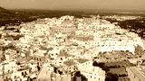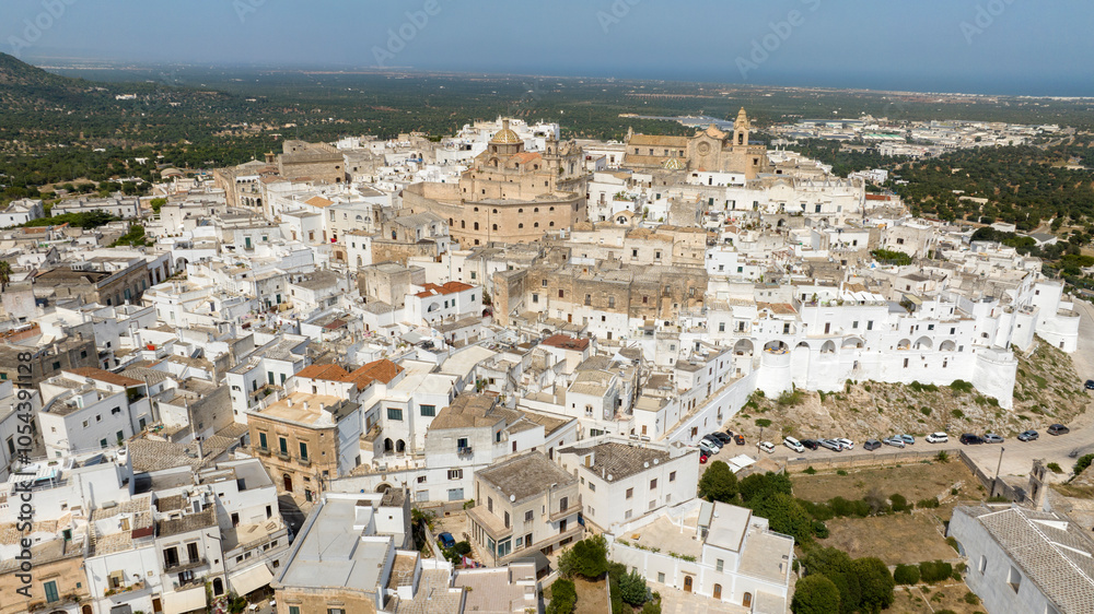 Aerial view of the Cathedral of Ostuni and the church of San Vito Martyr. These churches are located in the historic center of the town in the province of Brindisi, in Puglia, Italy.