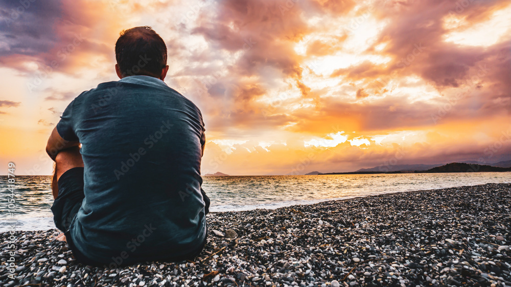 Man watching sunset by the sea.
