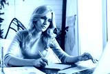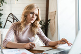 Busy Caucasian business woman manager, lawyer or company employee holding accounting bookkeeping documents checking financial data or marketing report working at home with laptop.