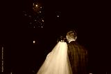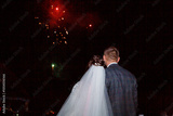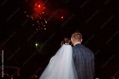 Romantic Wedding Night with Fireworks Over a Newlywed Couple