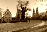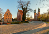 A dawn view of the Cathedral Basilica of St. Peter and St. Paul and surrounding historical buildings on the island of Ostrow Tumski in Poznan, Poland