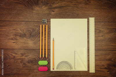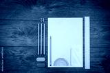 Office table or desk seen from above. Top view product photograph. Shool or university concept image.
