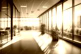 Blurred empty open space office. Abstract light bokeh at office interior background