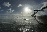 Colorful and beautiful clouds at sunrise with reflection in ocean in Zanzibar, Tanzania.