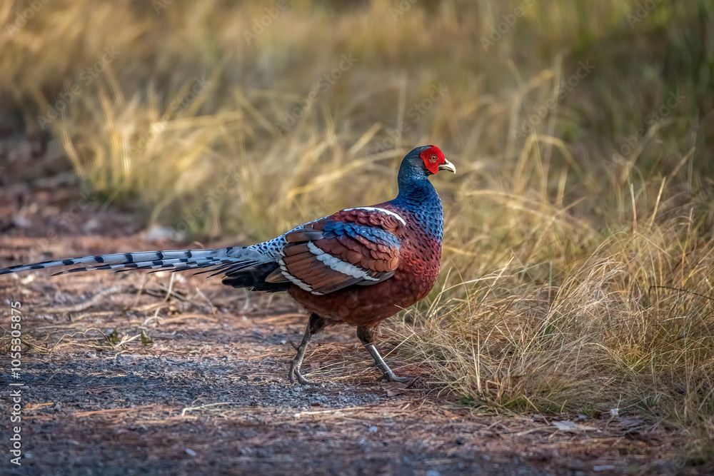 Male Mrs. hume´s pheasanwalking on ground, Thailand, South East Asia