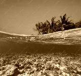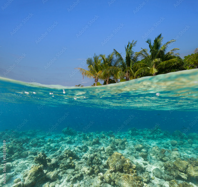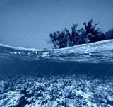 Underwater coral reef with tropical island