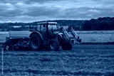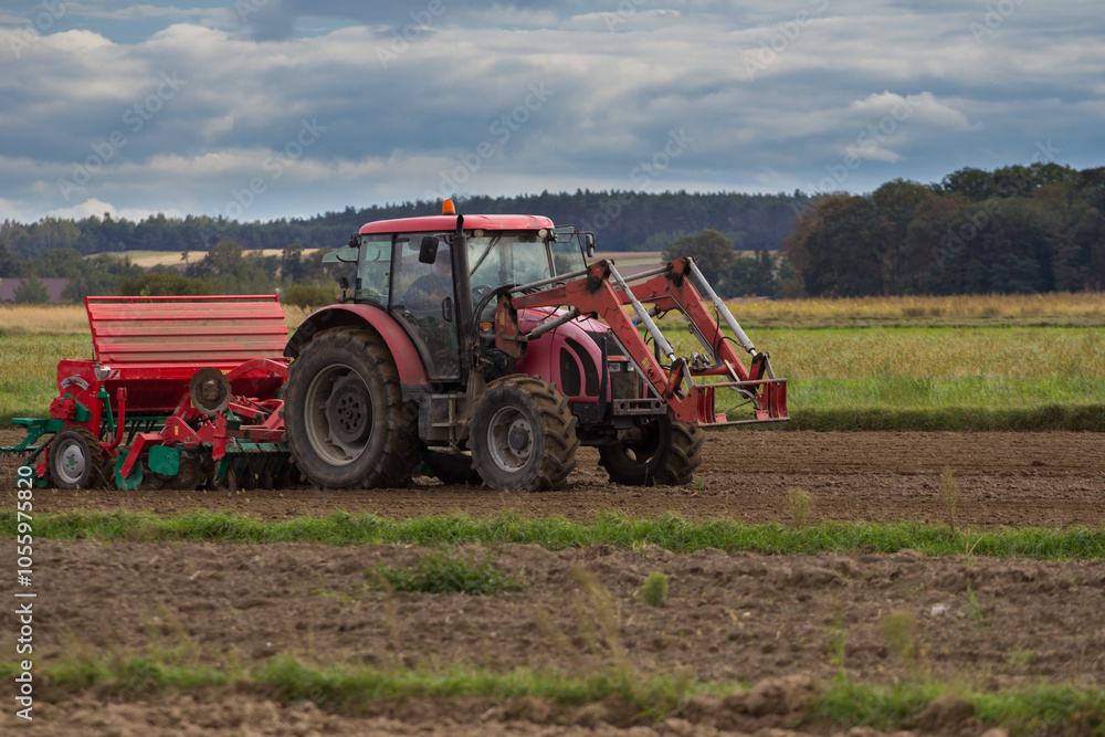 Farmer in tractor seeding soybeans at industrial agricultural farm