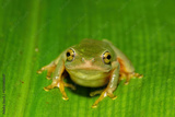 A beautiful Tinker reed frog (Hyperolius tuberilinguis) near a pond, in the wild