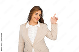 Young businesswoman pointing to featured product