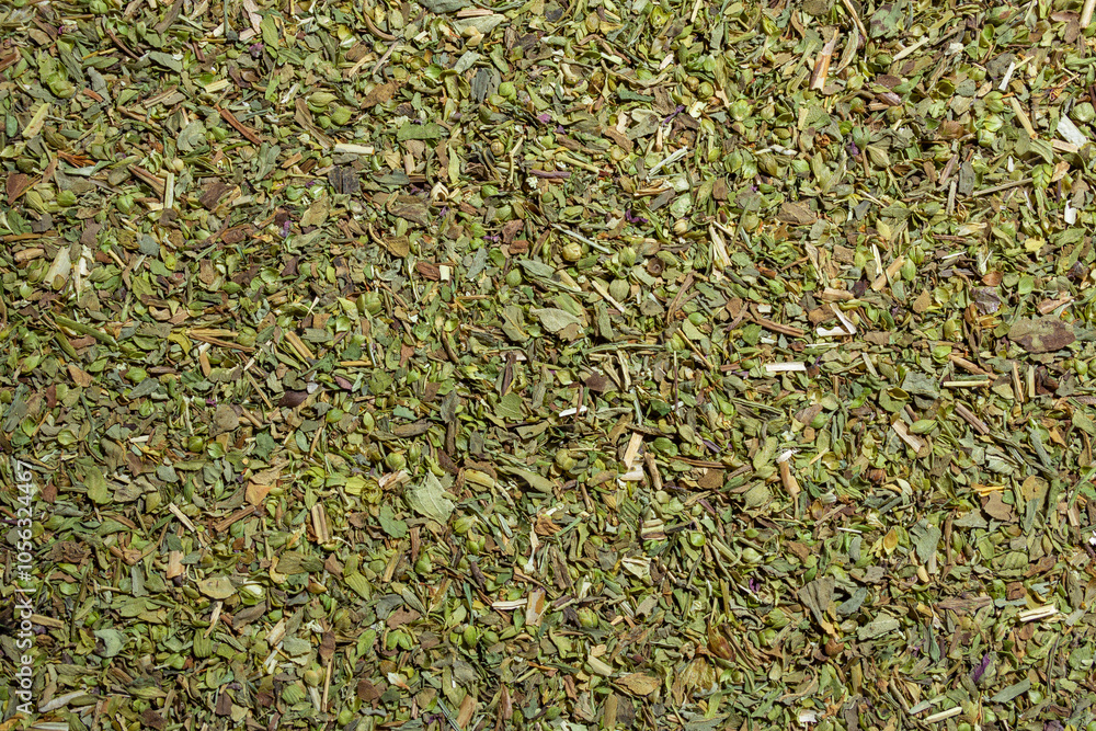 Dry Aromatic Herbs and Flavorful Spices Mix: A Culinary Canvas of Aroma Herb Seasoning. Textured Background for Gourmet Cooking. The Harmonious Combination of Dried Herbs and Spices - Top View