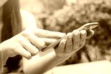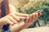 Close up Hand using smart phone for learning, morning time.