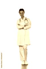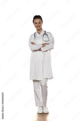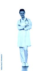 Smiling young woman doctor in uniform on a white background