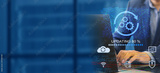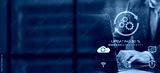 A business person updates software, installs an update process, and upgrades the software version concept. Software updates or operating system upgrades