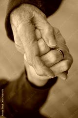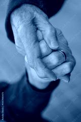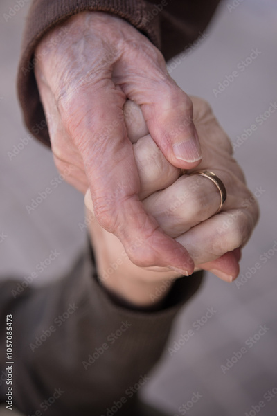 Two elder women holding hands with empathy as a sign of their friendship and love for each other at the end of their lives. Wrinkled female hands. Mental health in seniors, connection and affection.