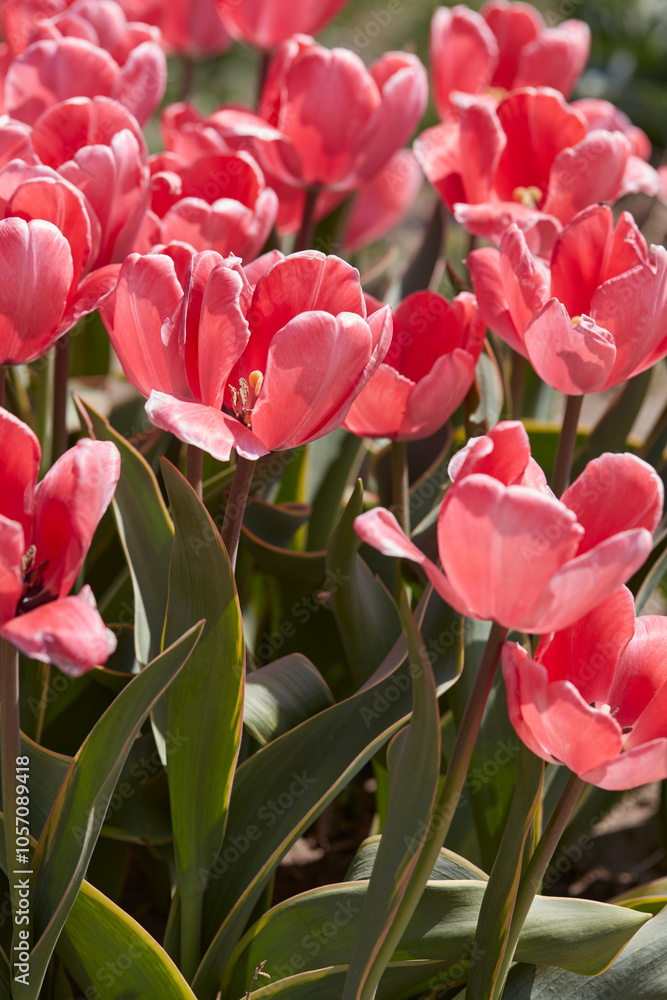 Tulip Design Impression pink flowers in spring sunlight