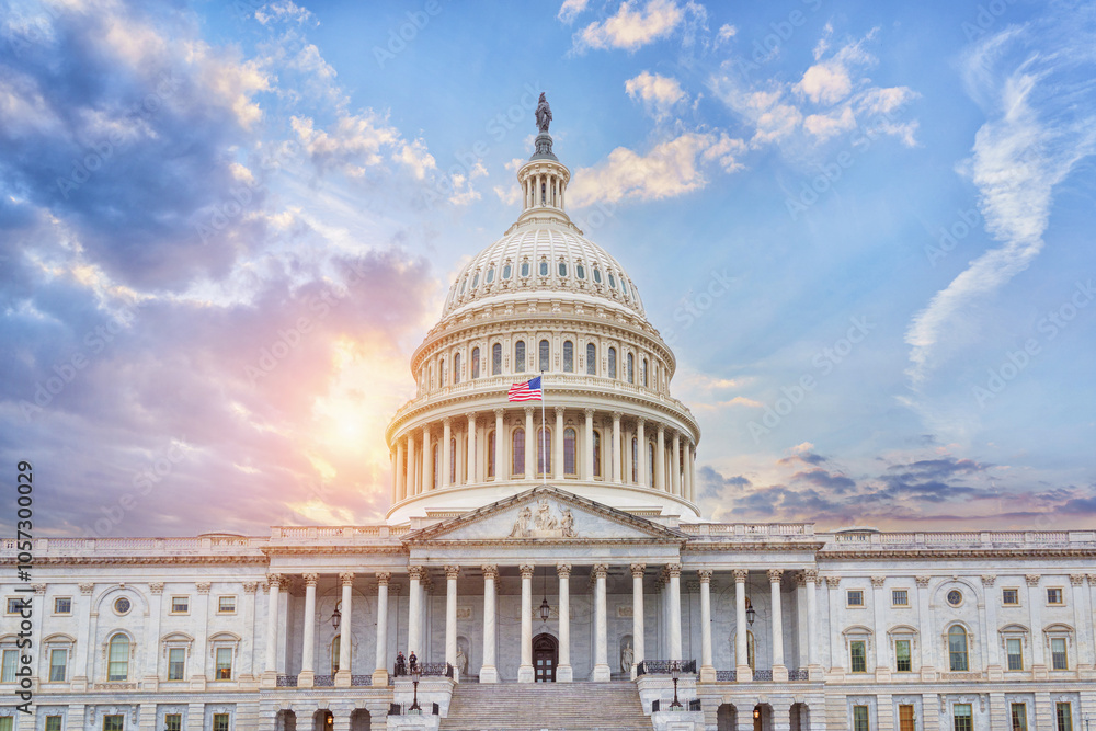 US Capitol building at sunset, Washington DC, USA.