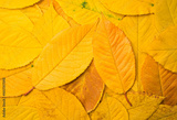 Many yellow autumn leaves, autumn fallen leaves close up. The texture of the foliage
