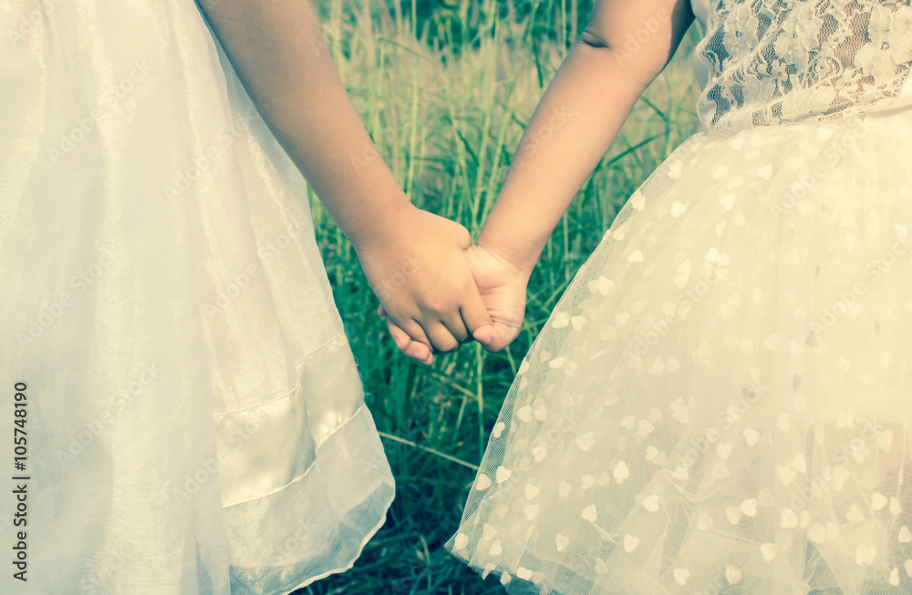 Close up of kid holding hands