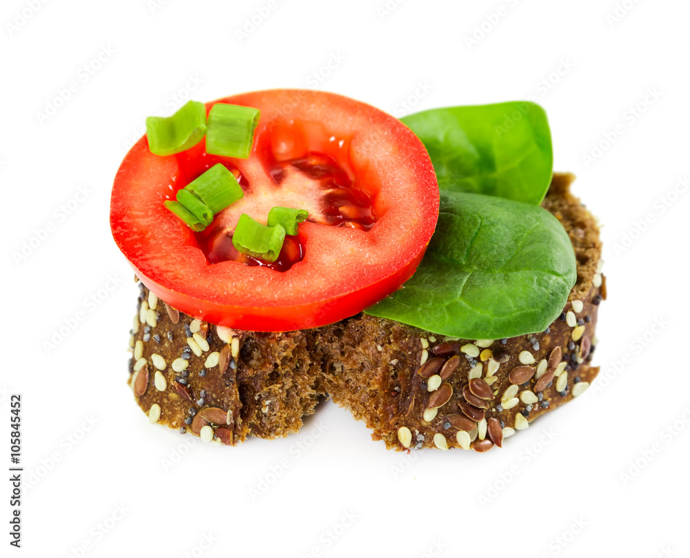 Small sandwich with tomato, spinach and onion