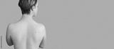 The back of a young woman with moles on the background. Without filters. Panoramic banner. A place for the text.